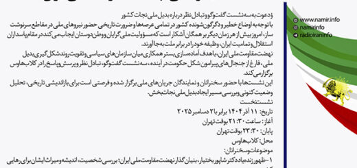 دعوت به سه نشست گفتوگو و تبادل نظر درباره بدیل ملی نجات کشور با توجه به اوضاع خطیر و دگرگونشونده کشور در تمامی عرصهها و ضرورت تاریخی حضور نیروهای ملی در مقاطع سرنوشتساز، امروز...