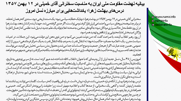 بیانیه نهضت مقاومت ملی ایران به مناسبت سخنرانی آقای خمینی در ۱۲ بهمن ۱۳۵۷