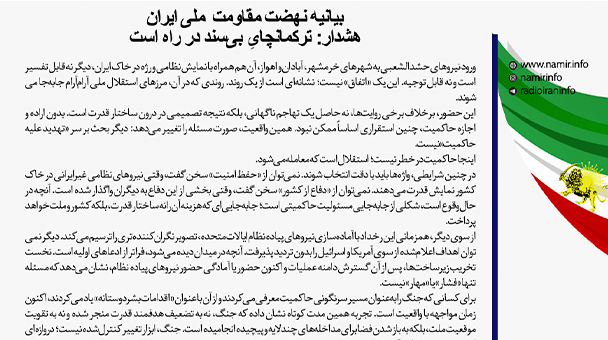 بیانیه نهضت مقاومت ملی ایران ورود نیروهای حشدالشعبی به شهرهای خرمشهر، آبادان و اهواز، آن هم همراه با نمایش نظامی و رژه در خاک ایران، دیگر نه قابل تفسیر است و نه قابل توجیه....