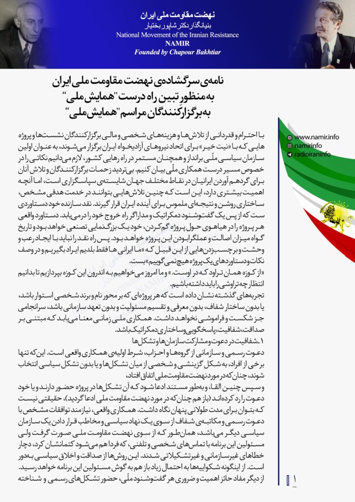 نامهی سرگشادهی نهضت مقاومت ملی ایران