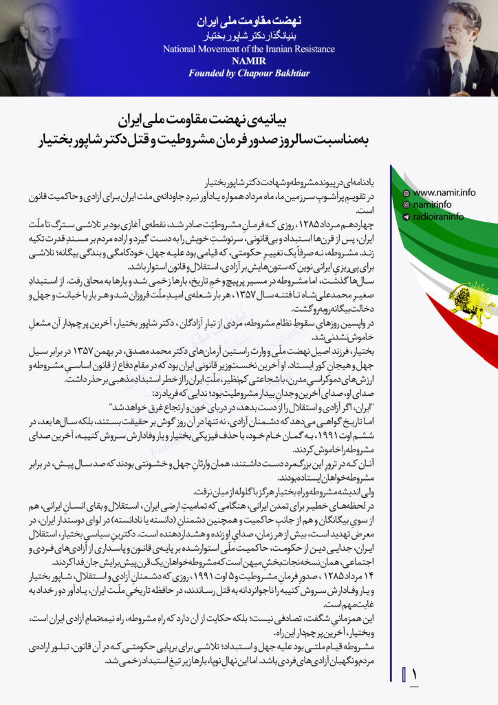 بهمناسبت سالروز صدور فرمان مشروطیت و قتل دکتر شاپور بختیار